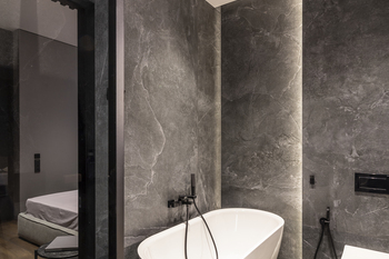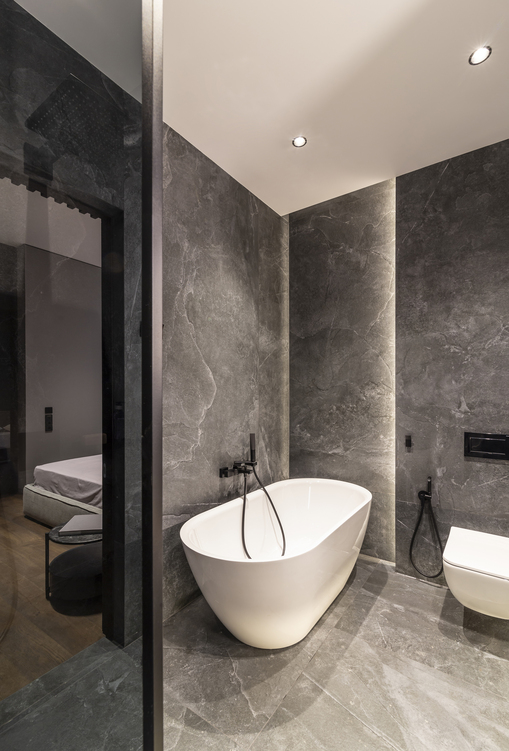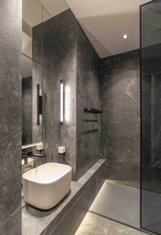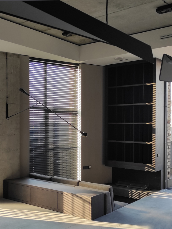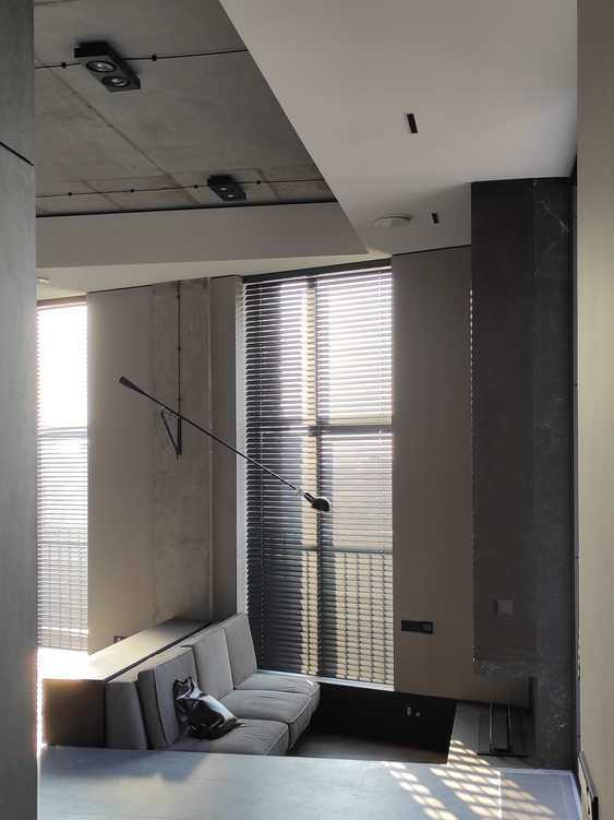Despite the monochromatic theme, the interior’s expressiveness is achieved through the volumetric layout, detailing, and lighting.