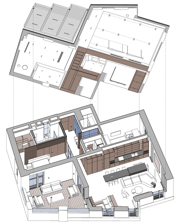 We aimed to create different life scenarios—an interior where one could comfortably watch breathtaking sunsets with a loved one, or celebrate holidays with friends.
